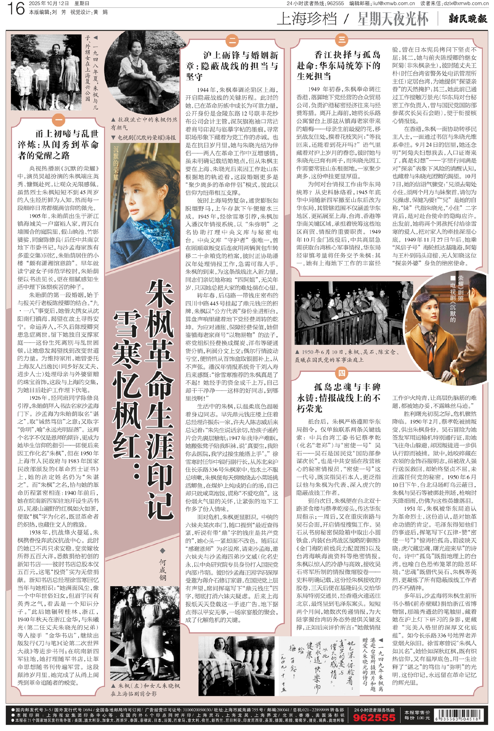 多年后,沙孟海将朱枫生前所书小楷《前赤壁赋》捐给浙江省博物馆,那端秀遒劲的笔触里,藏着她在沪上灯下研习的身影,更藏着“完美人格里的深厚文化底蕴”。如今长乐路336号地界老弄堂烟火依旧。徐雪寒曾说“朱枫人如其名”,她恰如深秋红枫,既有炽热信仰,又有温厚底色,用一生诠释了“谌之”的笃信与“弥明”的光明,这份印记,永远留在革命记忆的辉光里。