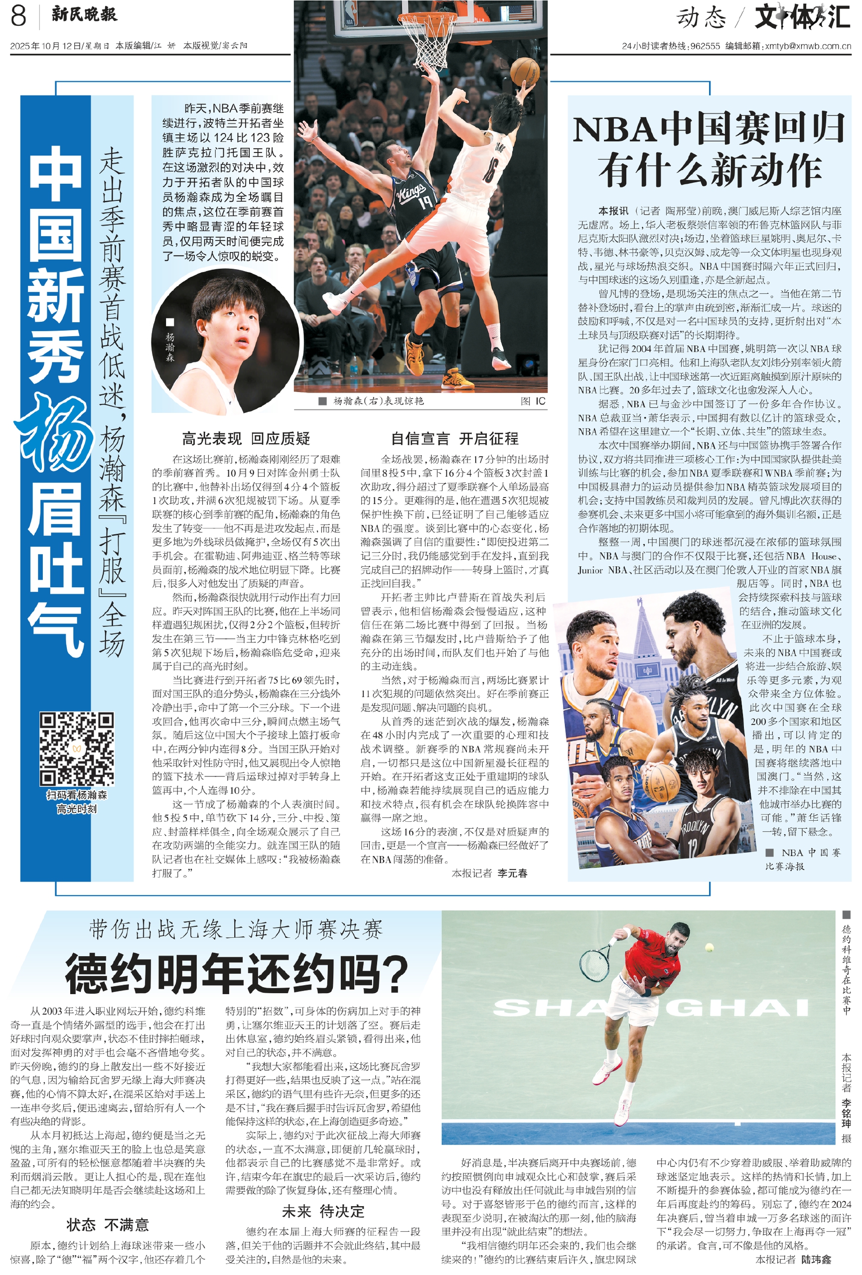 从首秀的迷茫到次战的爆发,杨瀚森在48小时内完成了一次重要的心理和技战术调整。新赛季的NBA常规赛尚未开启,一切都只是这位中国新星漫长征程的开始。在开拓者这支正处于重建期的球队中,杨瀚森若能持续展现自己的适应能力和技术特点,很有机会在球队轮换阵容中赢得一席之地。