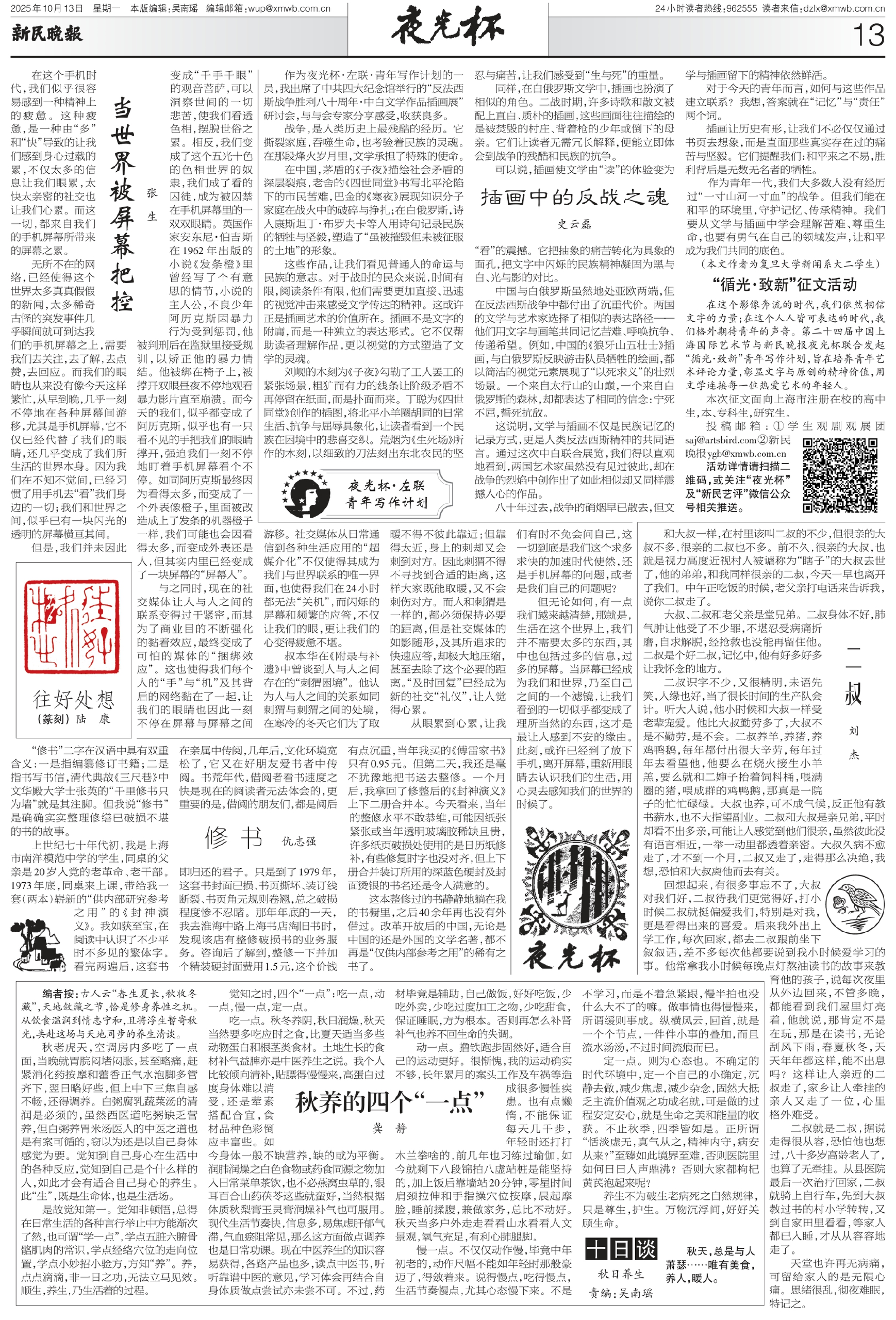 无所不在的网络,已经使得这个世界太多真真假假的新闻,太多稀奇古怪的突发事件几乎瞬间就可到达我们的手机屏幕之上,需要我们去关注,去了解,去点赞,去回应。而我们的眼睛也从来没有像今天这样繁忙,从早到晚,几乎一刻不停地在各种屏幕间游移,尤其是手机屏幕,它不仅已经代替了我们的眼睛,还几乎变成了我们所生活的世界本身。因为我们在不知不觉间,已经习惯了用手机去“看”我们身边的一切;我们和世界之间,似乎已有一块闪光的透明的屏幕横亘其间。
