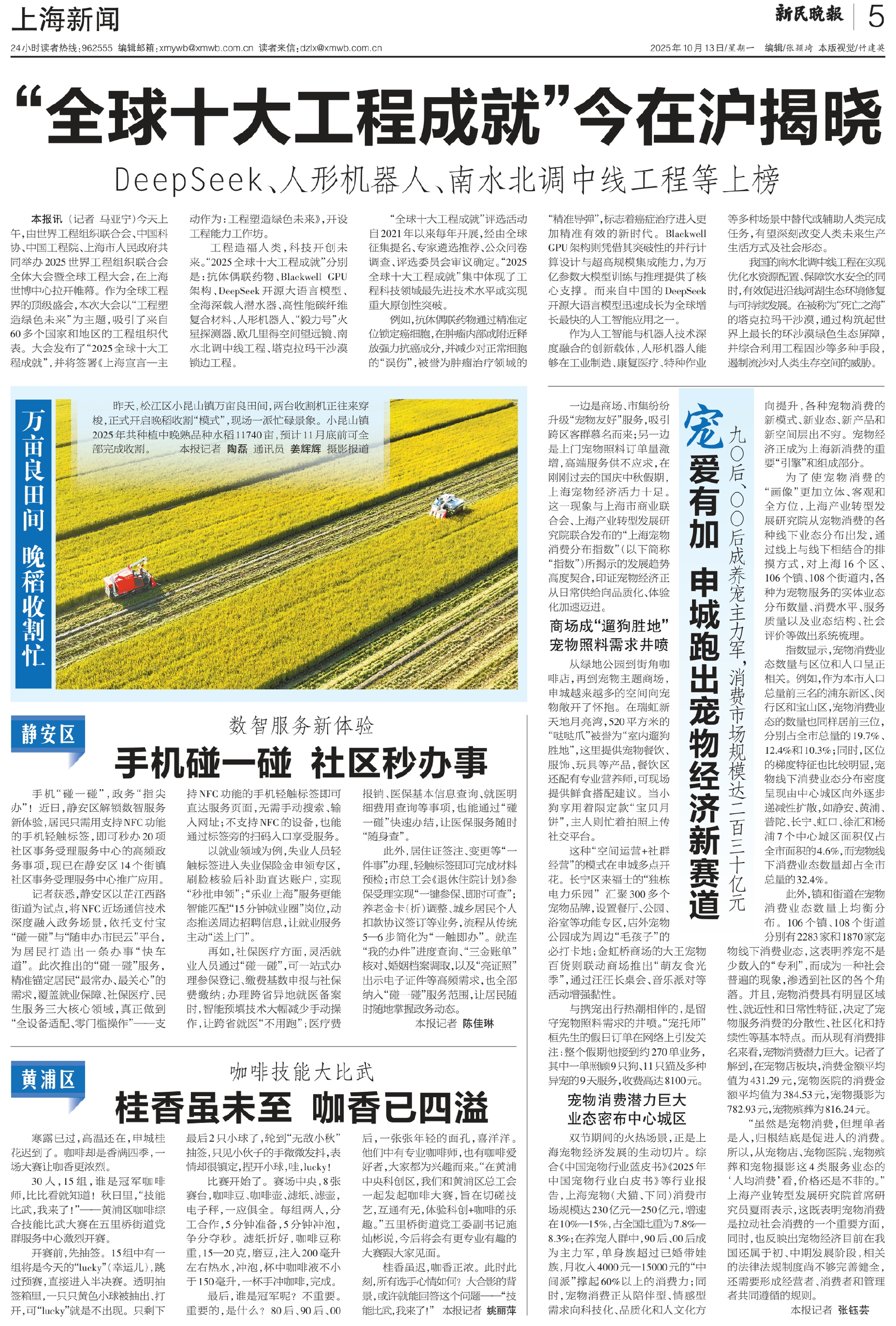 本报讯(记者 马亚宁)今天上午,由世界工程组织联合会、中国科协、中国工程院、上海市人民政府共同举办2025世界工程组织联合会全体大会暨全球工程大会,在上海世博中心拉开帷幕。作为全球工程界的顶级盛会,本次大会以“工程塑造绿色未来”为主题,吸引了来自60多个国家和地区的工程组织代表。大会发布了“2025全球十大工程成就”,并将签署《上海宣言—主动作为:工程塑造绿色未来》,开设工程能力工作坊。