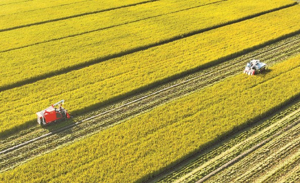 昨天,松江区小昆山镇万亩良田间,两台收割机正往来穿梭,正式开启晚稻收割“模式”,现场一派忙碌景象。小昆山镇2025年共种植中晚熟品种水稻11740亩,预计11月底前可全部完成收割。 本报记者 陶磊 通讯员 姜辉辉 摄影报道