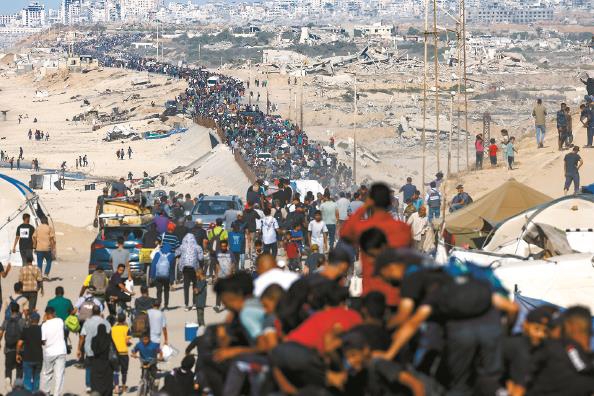 巴勒斯坦民众行进在返回加沙地带的路上 图IC