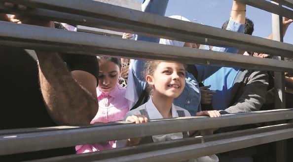 在约旦河西岸城市拉姆安拉,一名巴勒斯坦女孩等待获释的父亲归来 新华社 发