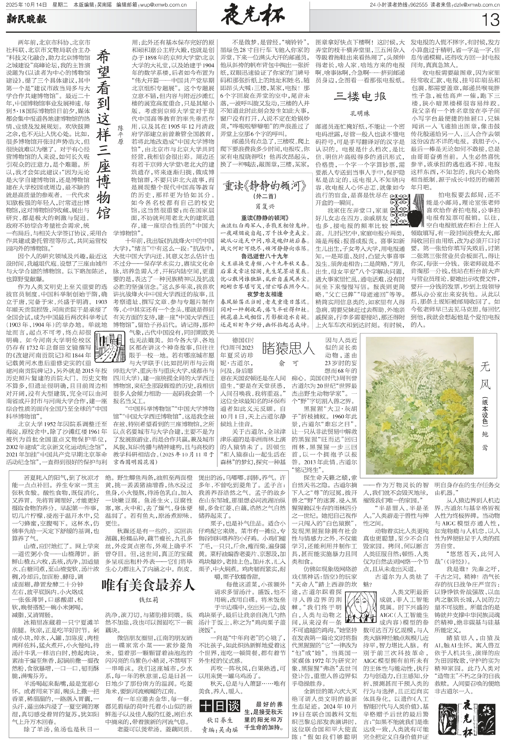 “中国科举博物馆”“中国大学博物馆”“中国大学西迁博物馆”,这是我念兹在兹、特别希望看到的三座博物馆,之所以点名要城市与大学合建,主要不是为了发展旅游业,而是合作共赢,兼及城市风貌、知识传播与精神建构,且与高校的教学科研相结合。(2025年10月11日于京西圆明园花园)