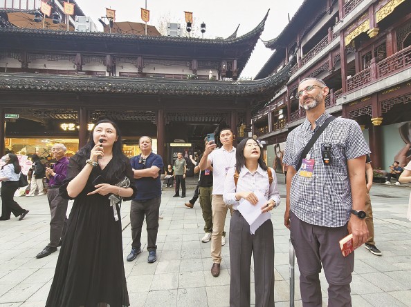 参会学者及嘉宾在豫园参观访问,感受海派文脉和非遗文化 本报记者 刘歆 摄