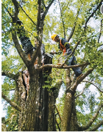 作为一级保护古树,真如寺银杏树保护工作受到高度重视。除日常养护和巡查外,管理部门还对银杏古树开展改善生长环境、施肥、修剪、白蚁防治等综合复壮技术措施,有效保障了银杏古树健康生长(见左图)。