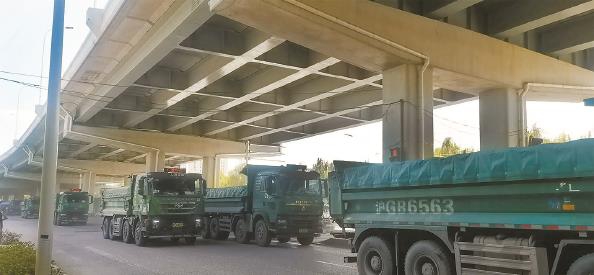 土方车队伍呼啸而过,其中还隐藏着其他危险动作。记者观察到,一队土方车由远而近驶来,打头的两辆车,保持着并驾齐驱的队形。队伍中间,竟还有土方车在前车、侧车间距有限的情况下突然变道,惊险画面让人捏紧了拳头。而在震天的喧嚣中,最不能让人忍受的是突然响起的鸣笛声。一声尖利的鸣笛毫无征兆地在耳边炸响,分贝极高,不少路人被吓得浑身一哆嗦。该地属上海外环线以内区域,本应执行全天“禁止鸣笛”规定。