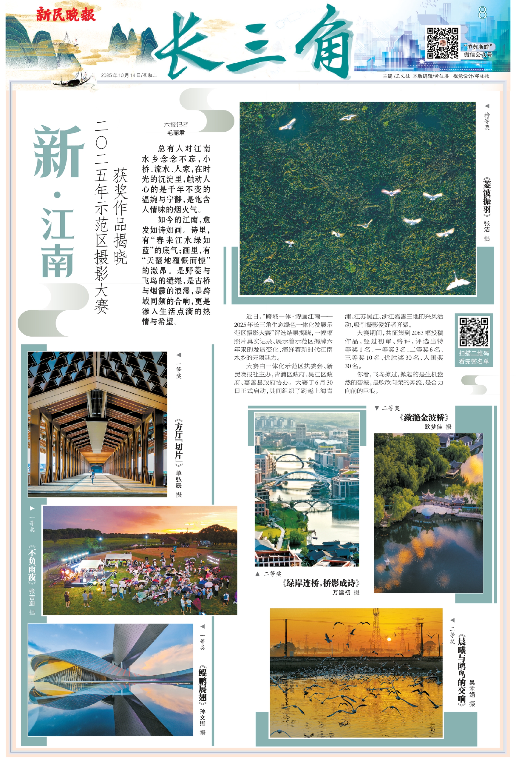近日,“跨域一体·诗画江南——2025年长三角生态绿色一体化发展示范区摄影大赛”评选结果揭晓,一幅幅照片真实记录、展示着示范区揭牌六年来的发展变化,演绎着新时代江南水乡的无限魅力。