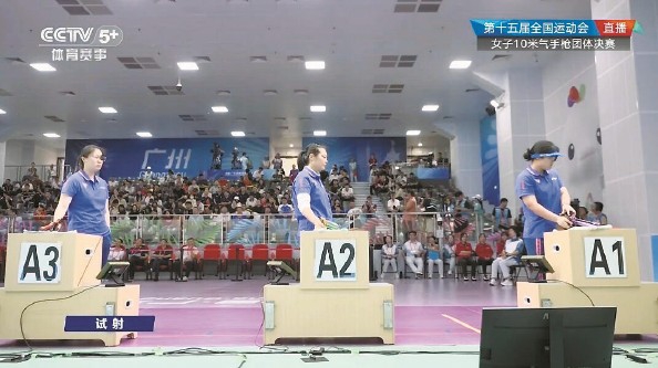 今天上午在广东射击馆结束的第十五届全运会射击项目女子10米气手枪团体决赛中,姜冉馨、张绮、沈奕瑶组成的上海队以16比8击败河北队,夺得冠军。本届全运会,上海射击实现了夺金的目标。