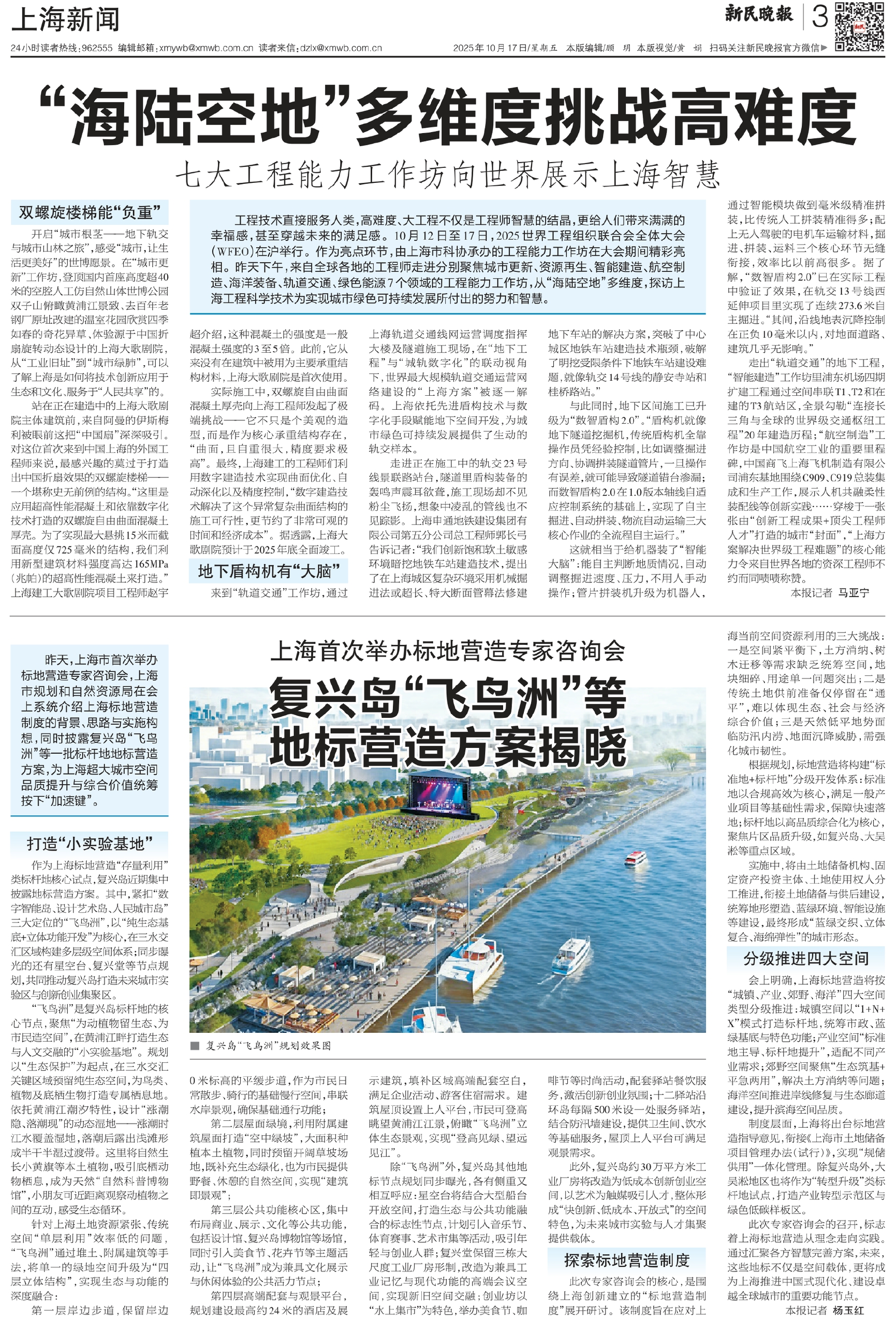 工程技术直接服务人类,高难度、大工程不仅是工程师智慧的结晶,更给人们带来满满的幸福感,甚至穿越未来的满足感。10月12日至17日,2025世界工程组织联合会全体大会(WFEO)在沪举行。作为亮点环节,由上海市科协承办的工程能力工作坊在大会期间精彩亮相。昨天下午,来自全球各地的工程师走进分别聚焦城市更新、资源再生、智能建造、航空制造、海洋装备、轨道交通、绿色能源7个领域的工程能力工作坊,从“海陆空地”多维度,探访上海工程科学技术为实现城市绿色可持续发展所付出的努力和智慧。