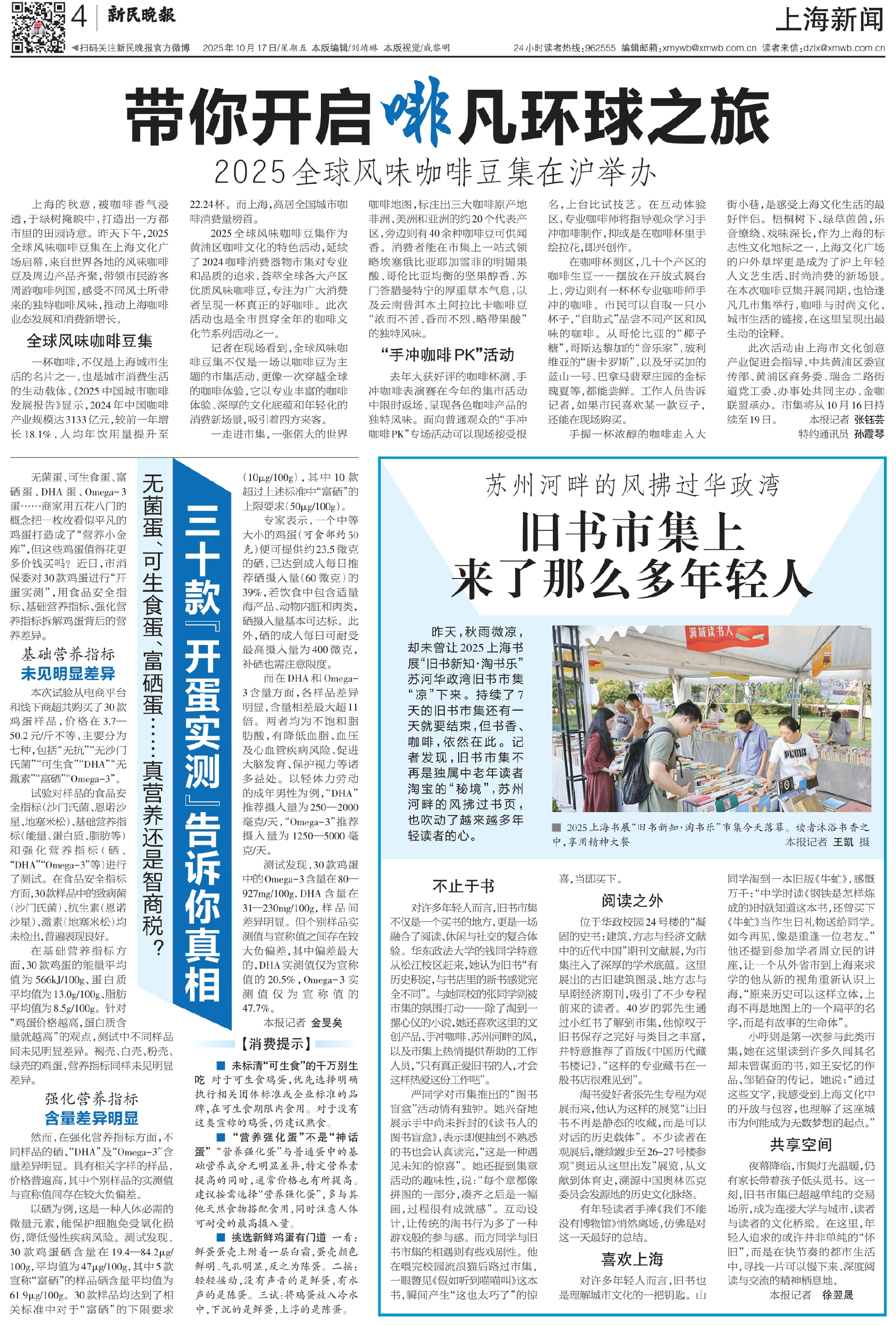 上海的秋意,被咖啡香气浸透,于绿树掩映中,打造出一方都市里的田园诗意。昨天下午,2025全球风味咖啡豆集在上海文化广场启幕,来自世界各地的风味咖啡豆及周边产品齐聚,带领市民游客周游咖啡列国,感受不同风土所带来的独特咖啡风味,推动上海咖啡业态发展和消费新增长。
