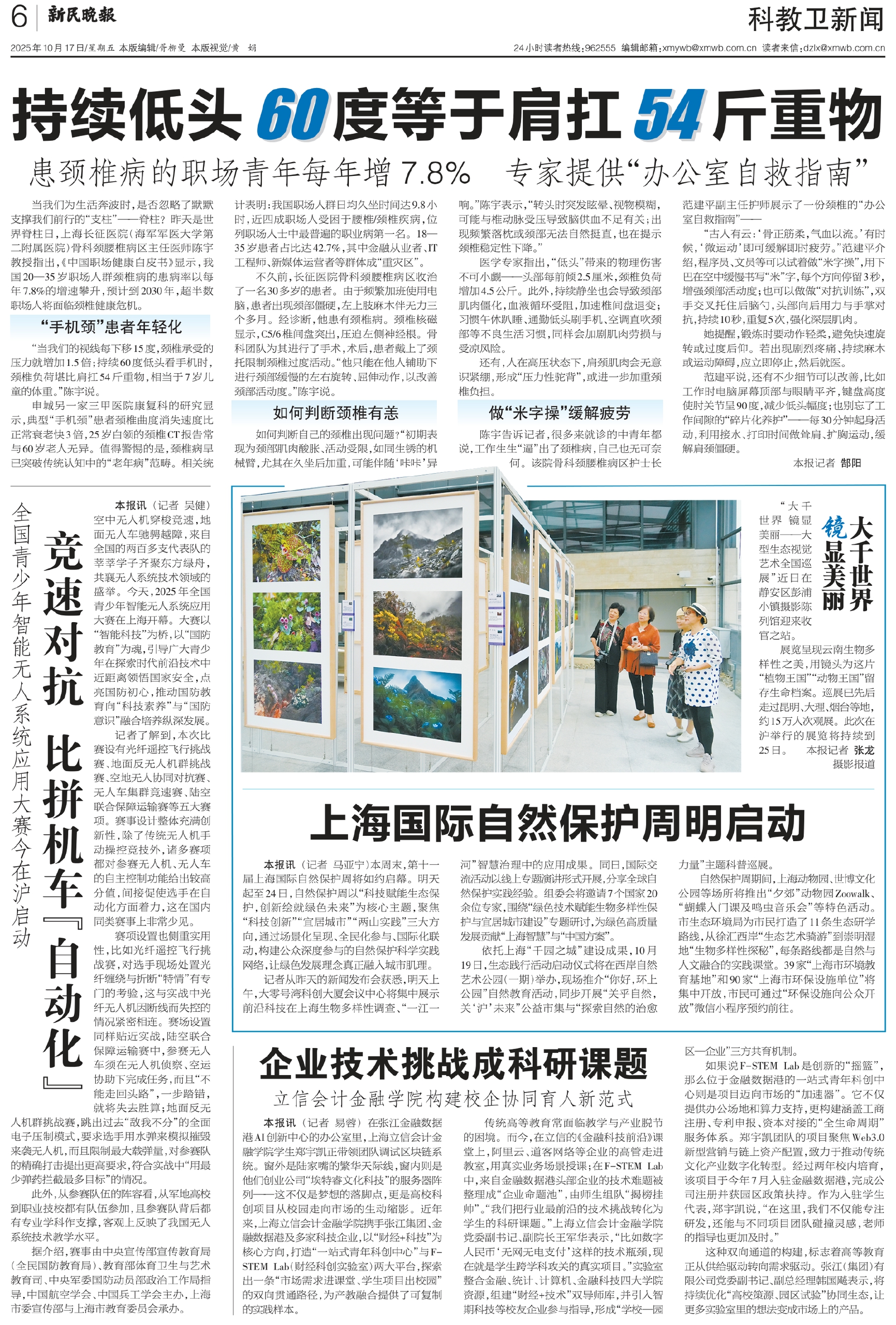 当我们为生活奔波时,是否忽略了默默支撑我们前行的“支柱”——脊柱?昨天是世界脊柱日,上海长征医院(海军军医大学第二附属医院)骨科颈腰椎病区主任医师陈宇教授指出,《中国职场健康白皮书》显示,我国20—35岁职场人群颈椎病的患病率以每年7.8%的增速攀升,预计到2030年,超半数职场人将面临颈椎健康危机。