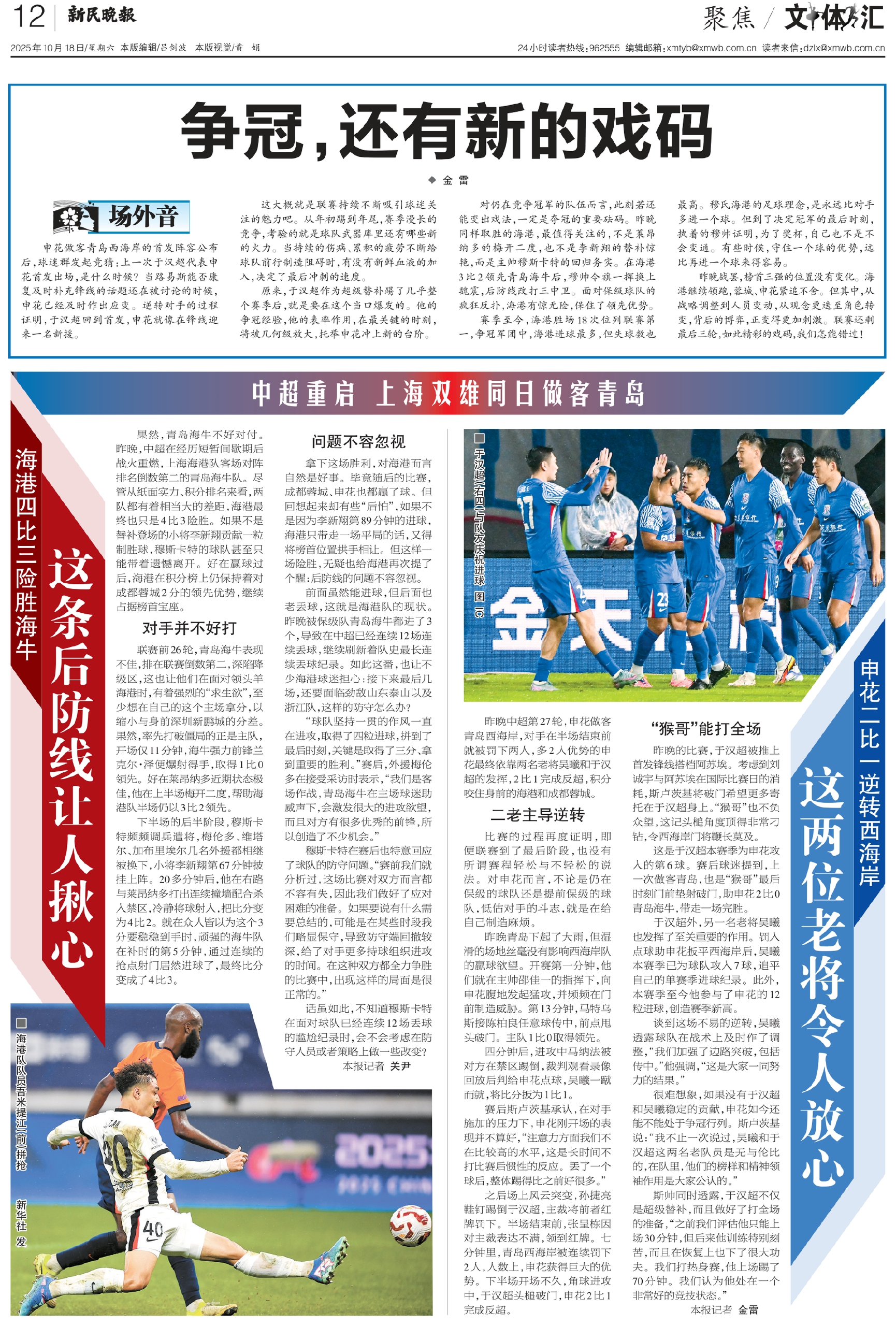 昨晚战罢,榜首三强的位置没有变化。海港继续领跑,蓉城、申花紧追不舍。但其中,从战略调整到人员变动,从观念更迭至角色转变,背后的博弈,正变得更加刺激。联赛还剩最后三轮,如此精彩的戏码,我们怎能错过!