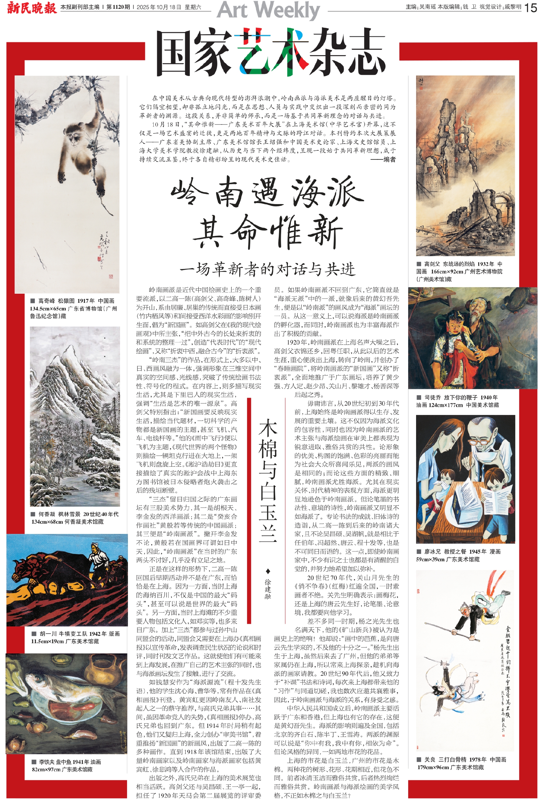 10月18日,“其命惟新——广东美术百年大展”在上海美术馆(中华艺术宫)开幕,这不仅是一场艺术盛宴的迁徙,更是两地百年精神与文脉的跨江对话。本刊特约本次大展策展人——广东省美协副主席、广东美术馆馆长王绍强和中国美术史论家、上海文史馆馆员、上海大学美术学院教授徐建融,从历史与当下两个经纬度,呈现一段始于共同革新理想,成于持续交流互鉴,终于各自精彩纷呈的现代美术史佳话。 ——编者