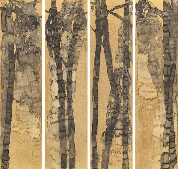 林蓝 淋漓2020年 中国画300cmx75cm×4