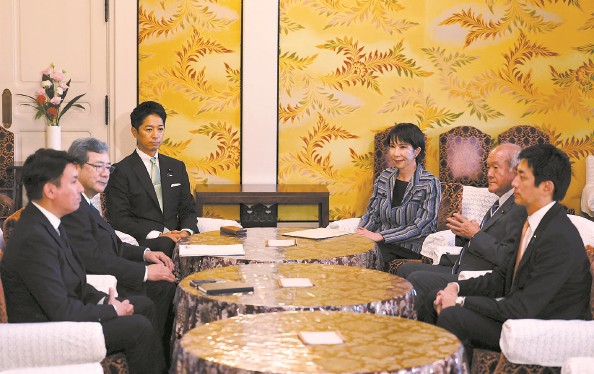 高市早苗(右三)与日本维新会党首吉村洋文(左三)会谈 本版图片IC