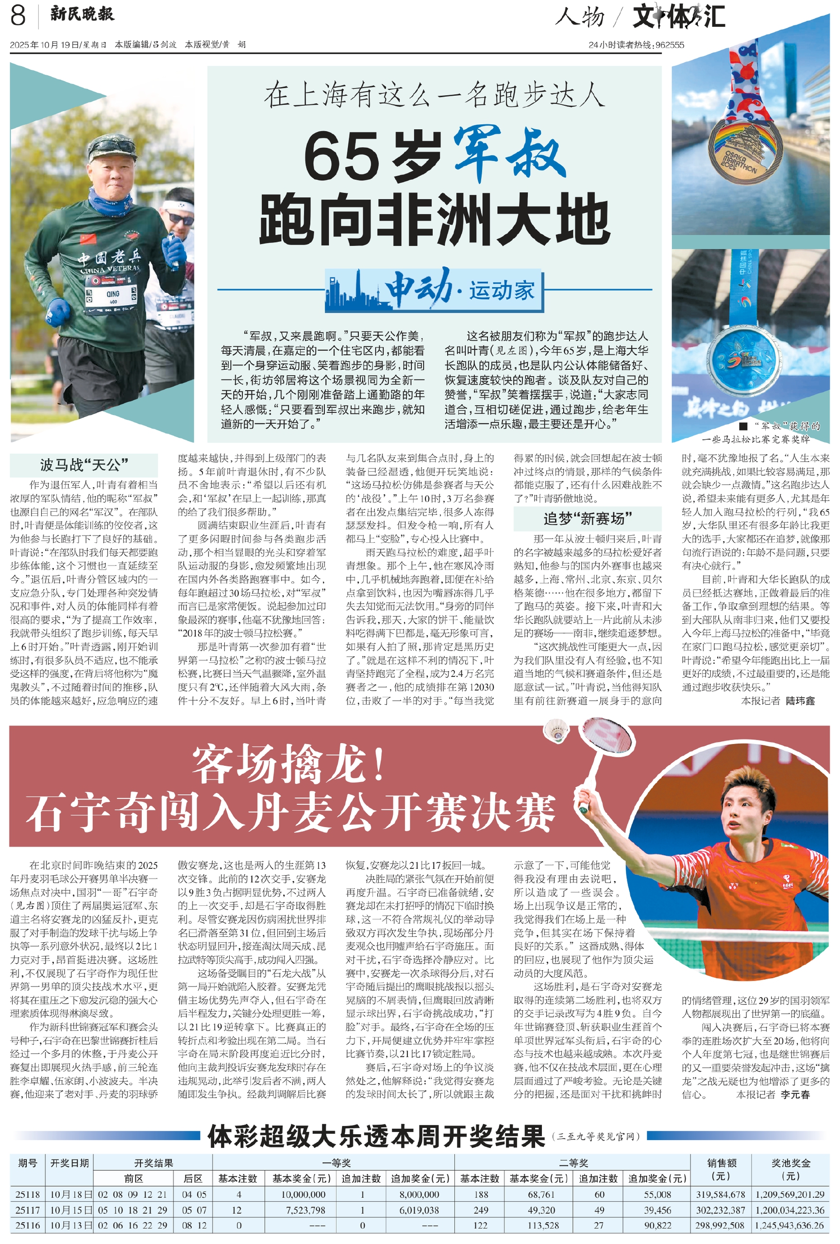 体彩超级大乐透本周开奖结果(三至九等奖见官网) 客场擒龙! 石宇奇闯入丹麦公开赛决赛 65岁军叔跑向非洲大地