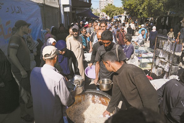 加沙地带巴勒斯坦人领取免费食物 图IC