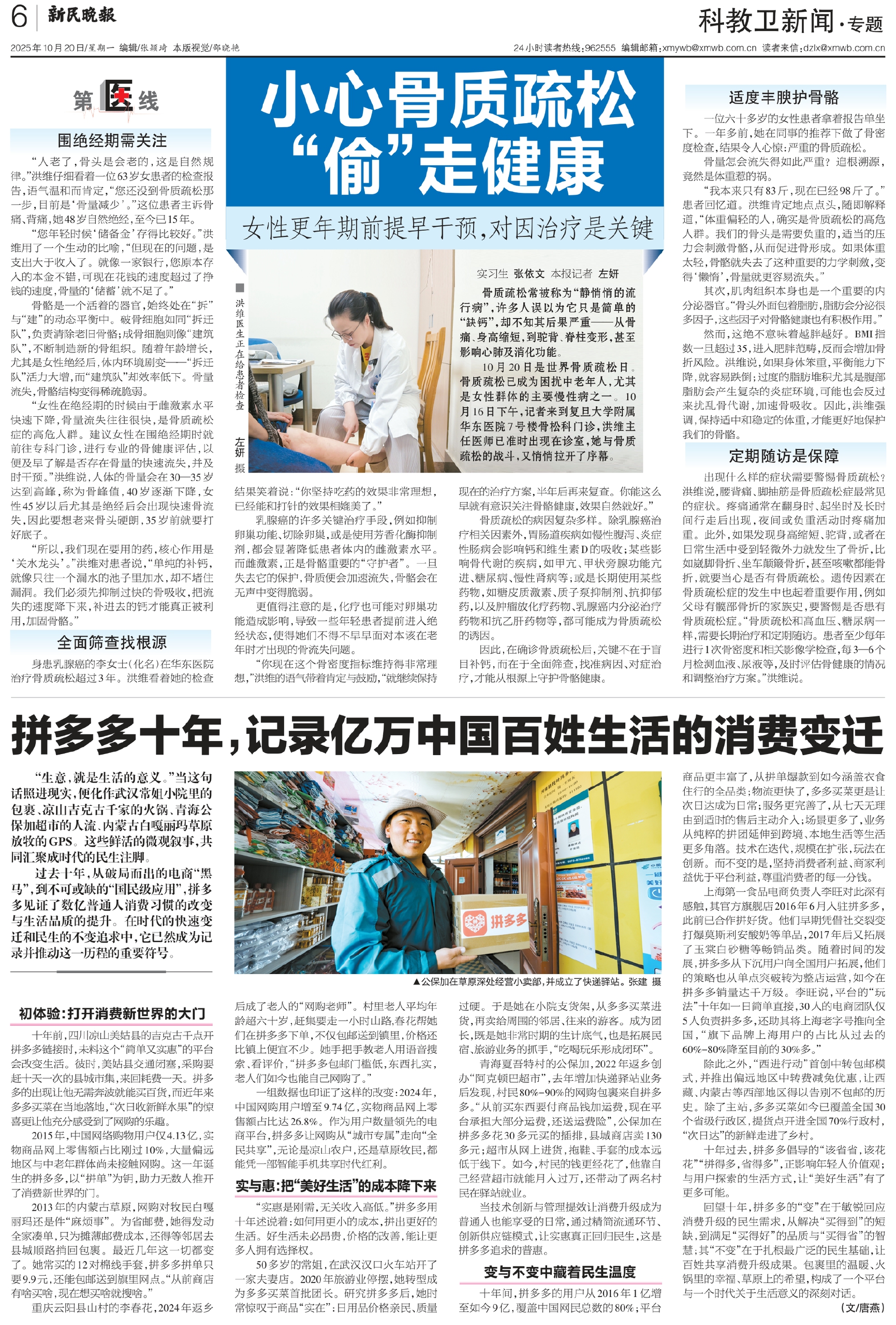 “人老了,骨头是会老的,这是自然规律。”洪维仔细看着一位63岁女患者的检查报告,语气温和而肯定,“您还没到骨质疏松那一步,目前是‘骨量减少’。”这位患者主诉骨痛、背痛,她48岁自然绝经,至今已15年。