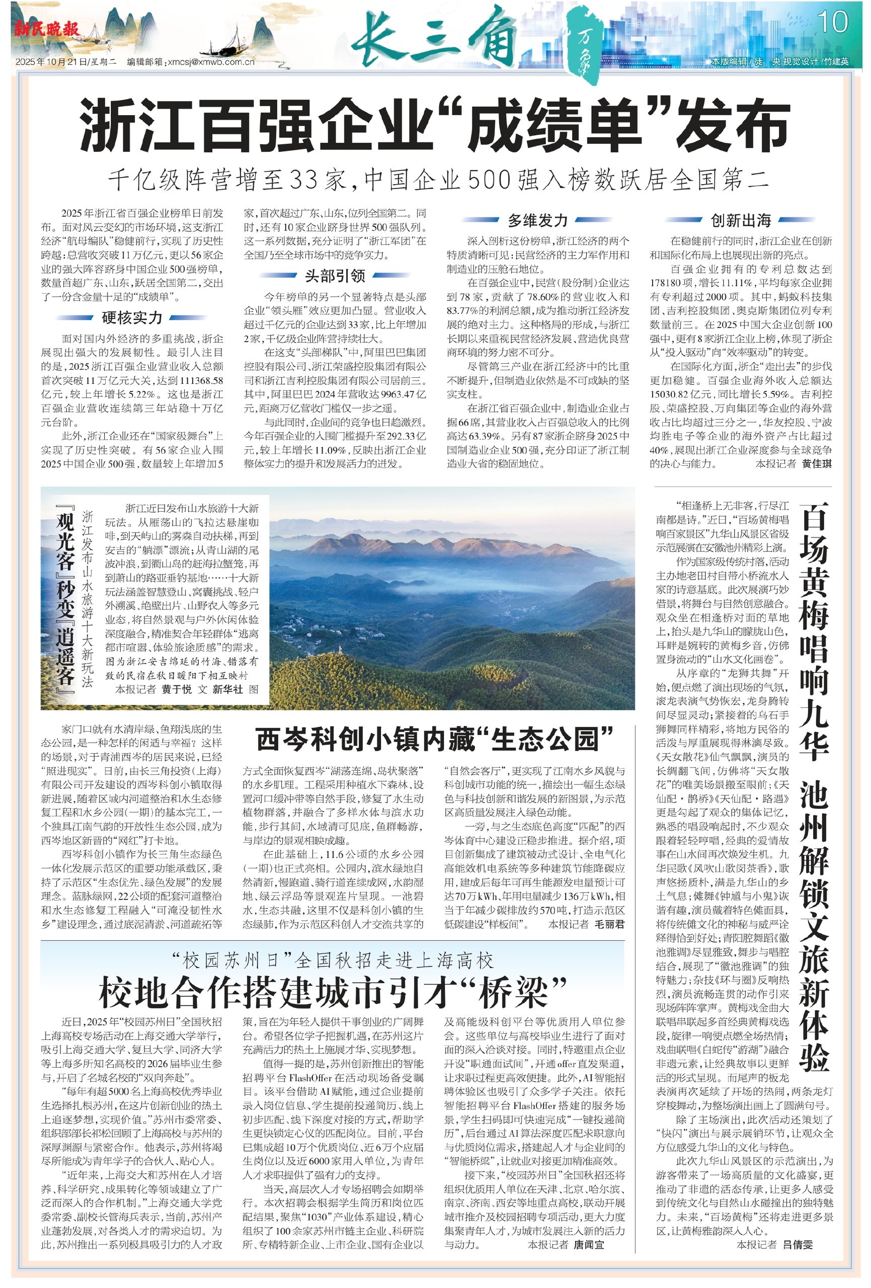 2025年浙江省百强企业榜单日前发布。面对风云变幻的市场环境,这支浙江经济“航母编队”稳健前行,实现了历史性跨越:总营收突破11万亿元,更以56家企业的强大阵容跻身中国企业500强榜单,数量首超广东、山东,跃居全国第二,交出了一份含金量十足的“成绩单”。