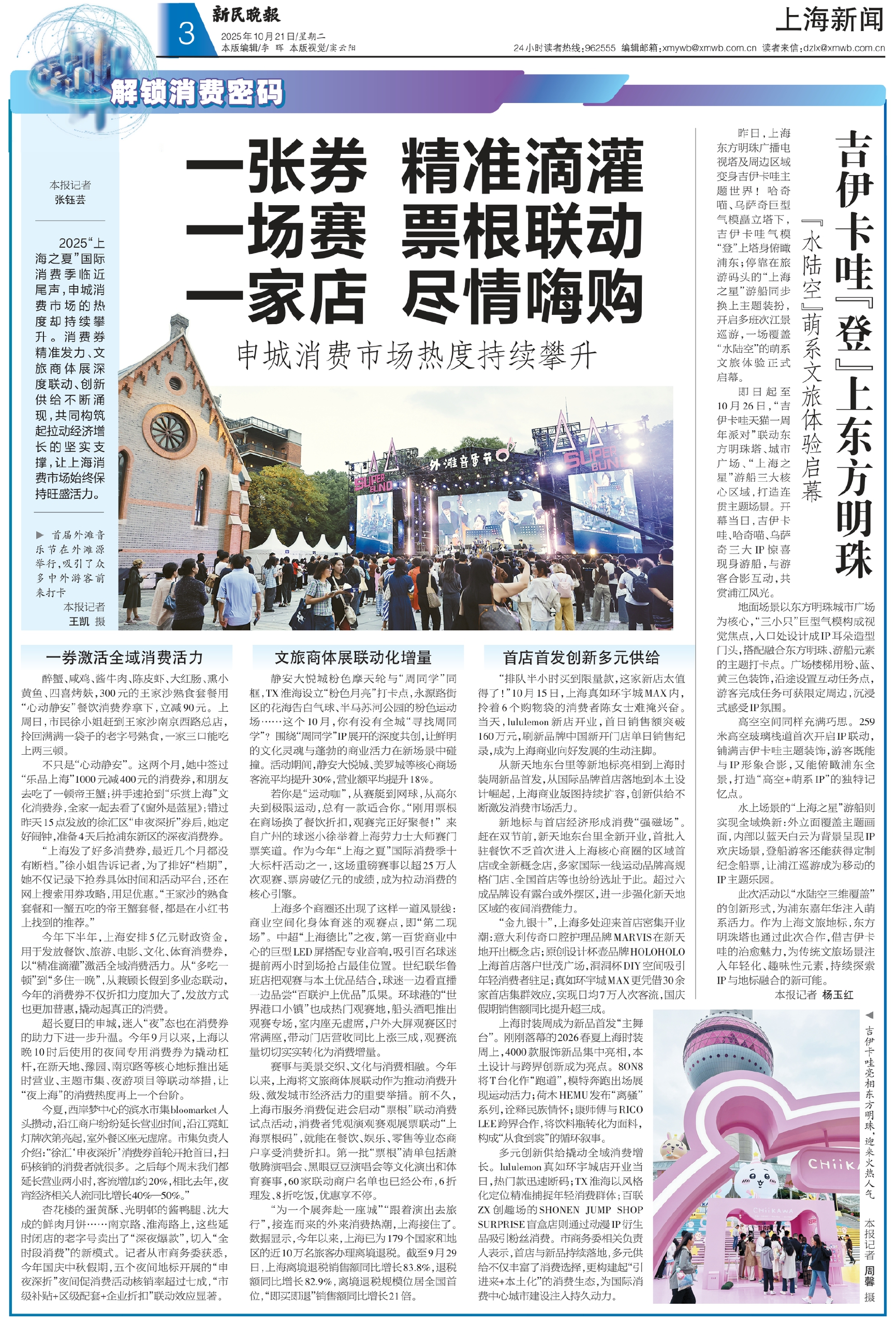 2025“上海之夏”国际消费季临近尾声,申城消费市场的热度却持续攀升。消费券精准发力、文旅商体展深度联动、创新供给不断涌现,共同构筑起拉动经济增长的坚实支撑,让上海消费市场始终保持旺盛活力。