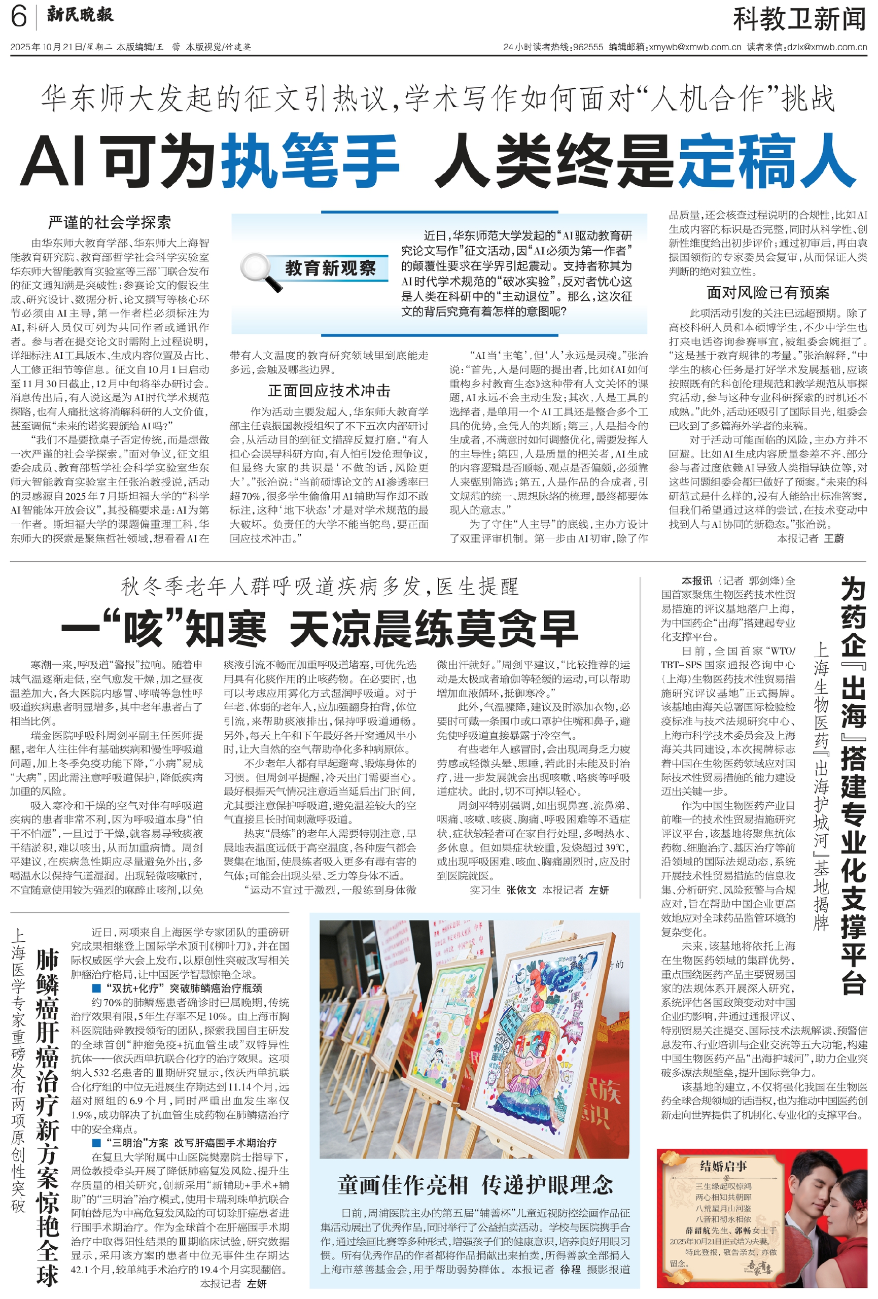 由华东师大教育学部、华东师大上海智能教育研究院、教育部哲学社会科学实验室华东师大智能教育实验室等三部门联合发布的征文通知满是突破性:参赛论文的假设生成、研究设计、数据分析、论文撰写等核心环节必须由AI主导,第一作者栏必须标注为AI,科研人员仅可列为共同作者或通讯作者。参与者在提交论文时需附上过程说明,详细标注AI工具版本、生成内容位置及占比、人工修正细节等信息。征文自10月1日启动至11月30日截止,12月中旬将举办研讨会。消息传出后,有人说这是为AI时代学术规范探路,也有人痛批这将消解科研的人文价值,甚至调侃“未来的诺奖要颁给AI吗?”