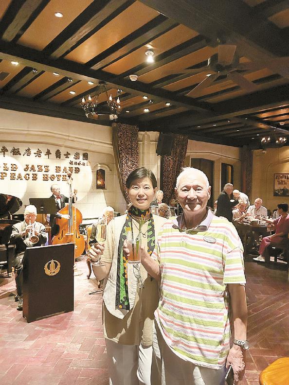 杨中光与女儿观看和平饭店老年爵士乐队演出