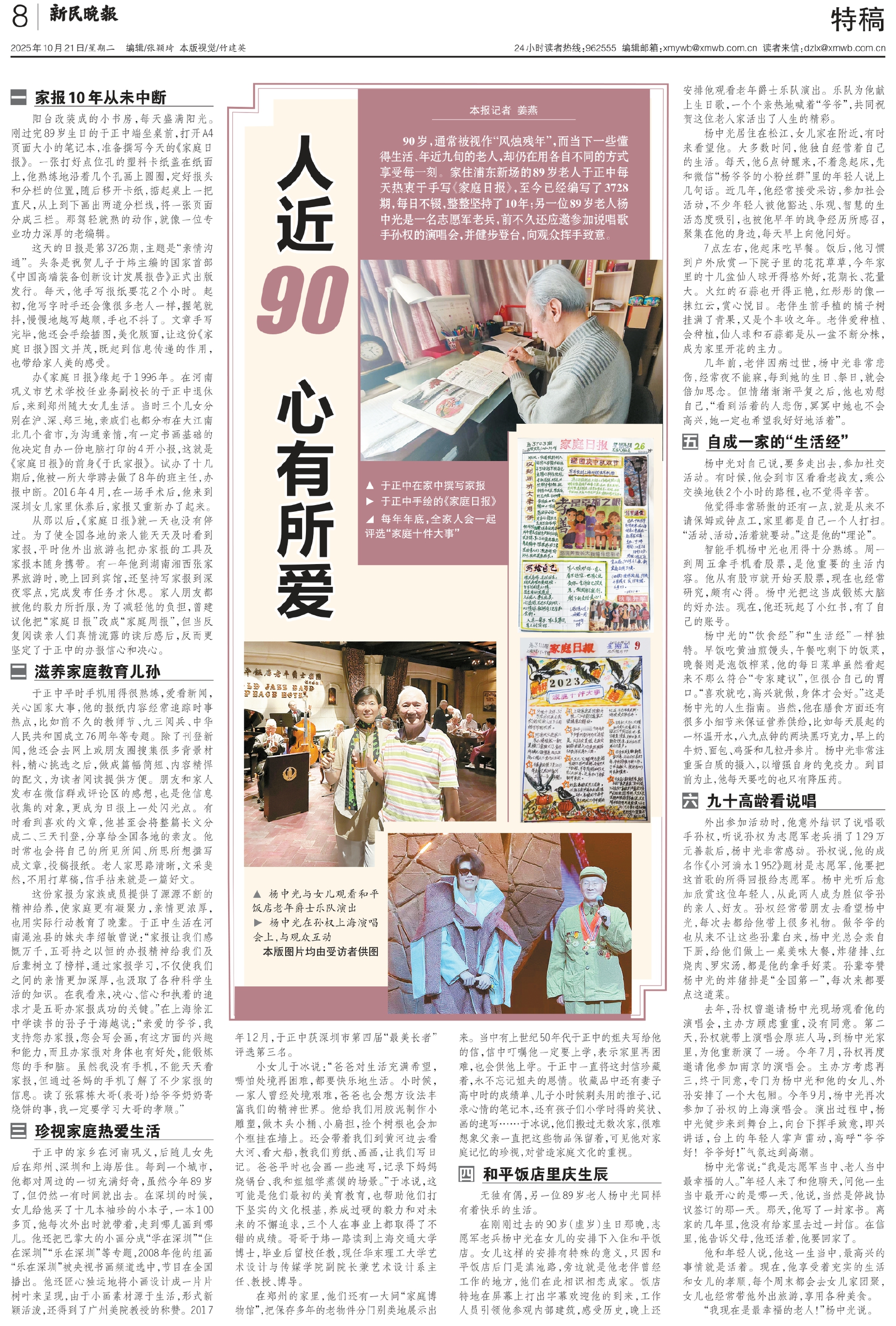 90岁,通常被视作“风烛残年”,而当下一些懂得生活、年近九旬的老人,却仍在用各自不同的方式享受每一刻。家住浦东新场的89岁老人于正中每天热衷于手写《家庭日报》,至今已经编写了3728期,每日不辍,整整坚持了10年;另一位89岁老人杨中光是一名志愿军老兵,前不久还应邀参加说唱歌手孙权的演唱会,并健步登台,向观众挥手致意。