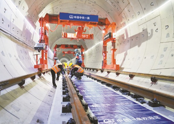 图为佳林路站铺轨基地施工现场 本报记者 张龙 摄