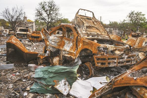 顿涅茨克地区房屋和汽车被战火摧毁 图IC