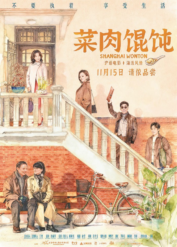 同日发布的定档海报则给人一种扑面而来的温馨之感。老汪与爱人素娟坐在长椅上说说笑笑,旁边停着陪伴两人走过无数岁月的老式自行车。美琴、阿芳、老金、小汪相约来到老汪家吃他最拿手的菜肉馄饨,让人不禁对这一碗上海人无法割舍的日常美食充满想象。“这个故事其实是我们写给上海的一封情书,希望这封情书被打开的时候,大家可以体会到其中浓浓的感情。”原著小说作者、影片编剧金莹这样说。