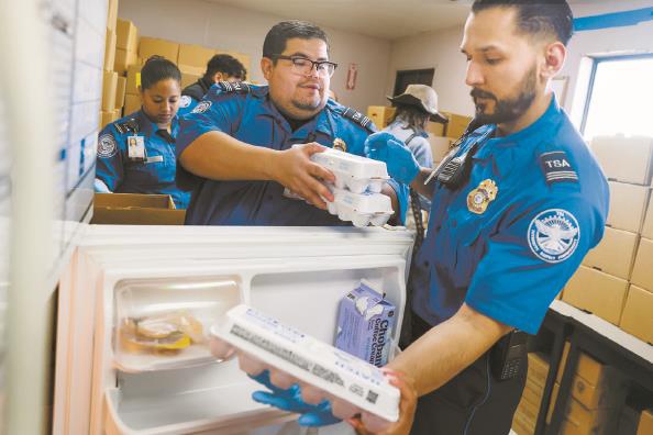 无薪上班的美国运输安全管理局工作人员领取免费食物