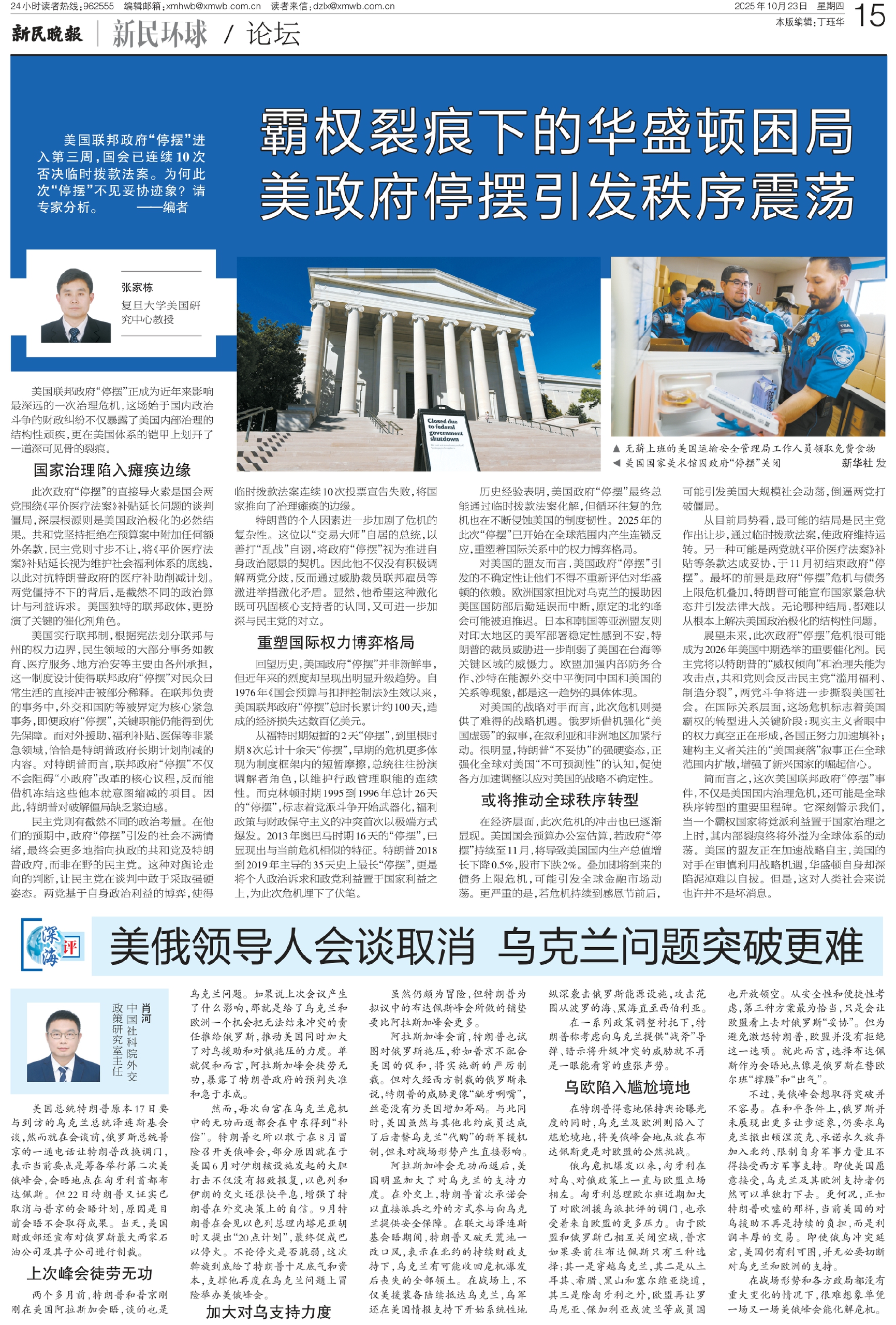 历史经验表明,美国政府“停摆”最终总能通过临时拨款法案化解,但循环往复的危机也在不断侵蚀美国的制度韧性。2025年的此次“停摆”已开始在全球范围内产生连锁反应,重塑着国际关系中的权力博弈格局。