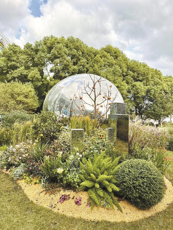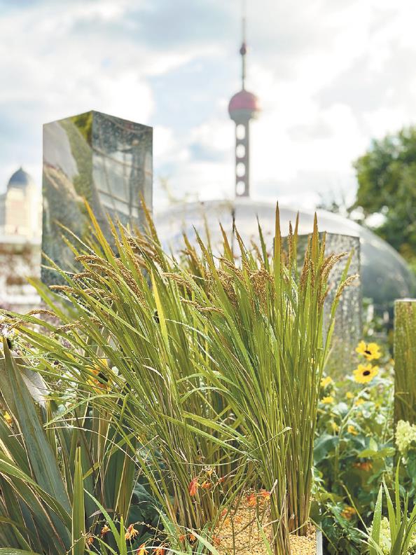 记者看到,38组作品代表着长三角园艺造景的最高水准。比如,长宁区绿化管理事务中心带来的《花漾镜》,借“花样经”谐音凸显园林行业生态性与现代性。花境中,以柿子、橘子、水稻等展示金秋果实累累的丰收意境,还借平面和波纹的容器打造“镜中有花、境中有意”的感觉。上海长宁园林绿化建设有限公司设计师周骏恺介绍:“我们特地从松江农田中移植了许多水稻,种植在波浪纹的容器里,营造稻田翻滚的感觉。”