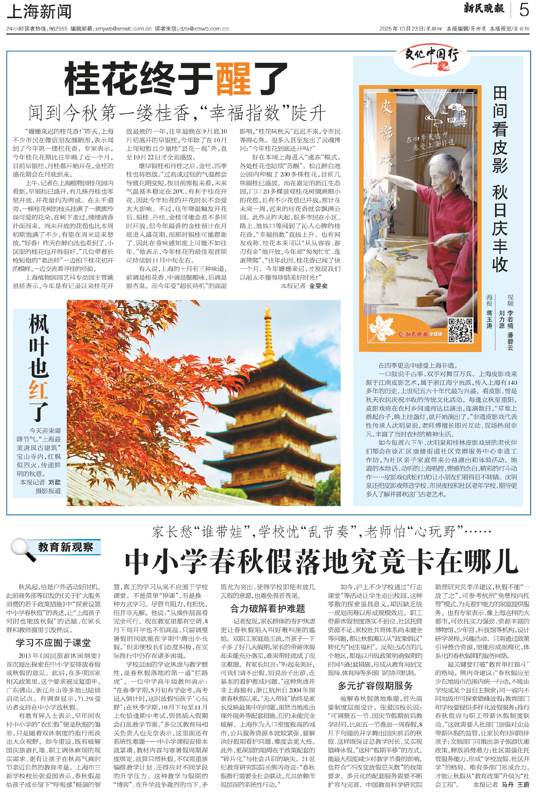 有人说,上海的十月有三种味道,前调是桂花香,中调是蟹醋味,后调是银杏臭。而今年受“超长待机”的高温影响,“桂花味秋天”迟迟不来,令市民等得心焦。很多人甚至发出了灵魂拷问:“今年桂花到底还开吗?”