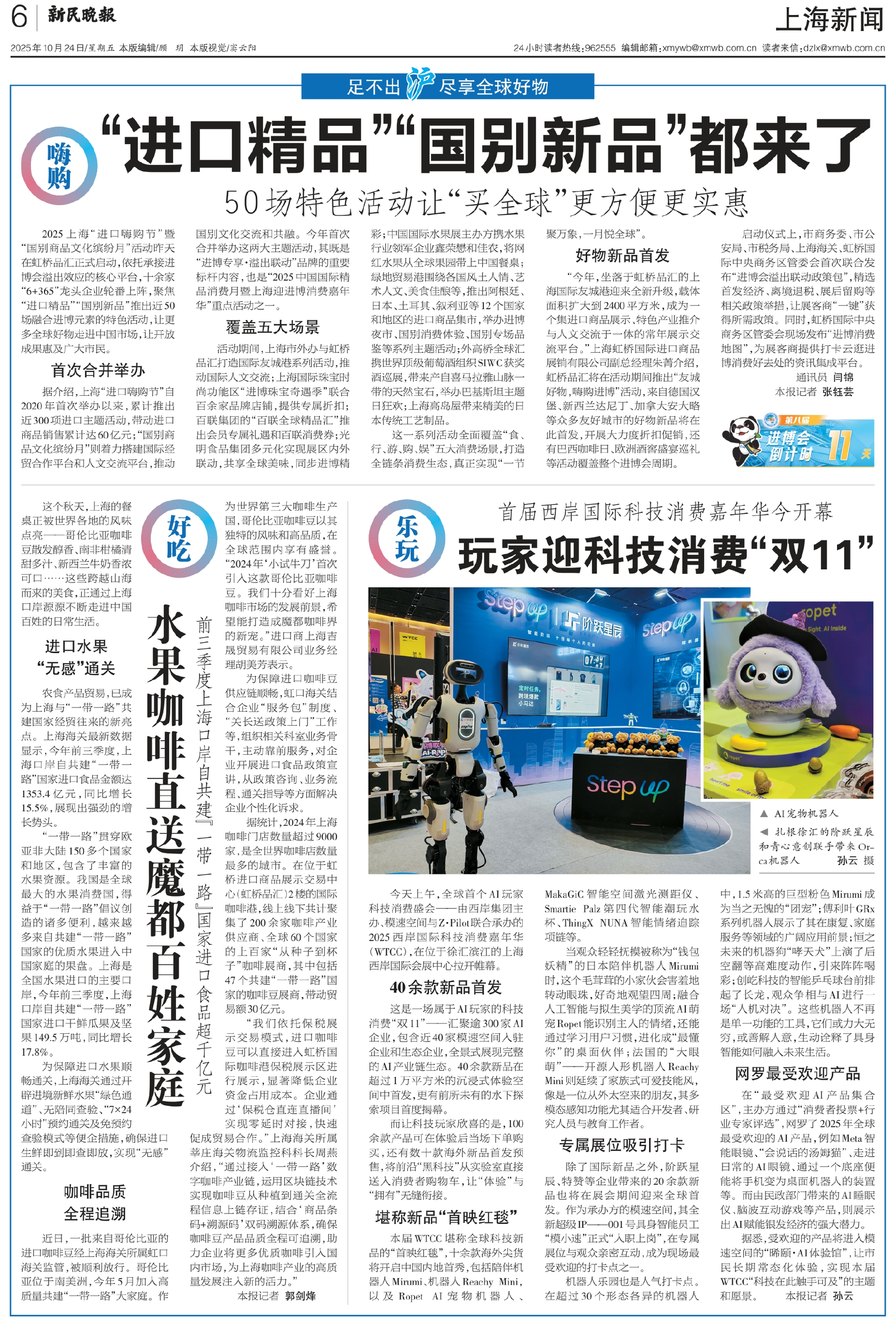 据介绍,上海“进口嗨购节”自2020年首次举办以来,累计推出近300项进口主题活动,带动进口商品销售累计达60亿元;“国别商品文化缤纷月”则着力搭建国际经贸合作平台和人文交流平台,推动国别文化交流和共融。今年首次合并举办这两大主题活动,其既是“进博专享·溢出联动”品牌的重要标杆内容,也是“2025中国国际精品消费月暨上海迎进博消费嘉年华”重点活动之一。