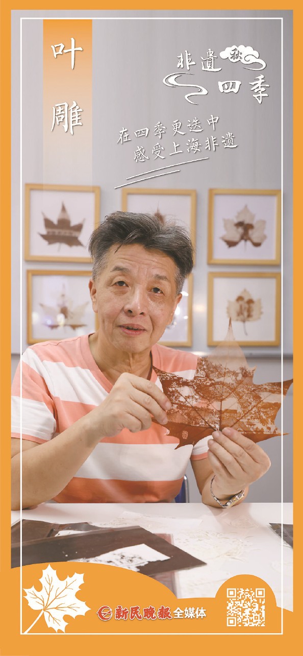 叶雕,又称剪叶,以秋季成熟的自然落叶为材料,经手工精雕细琢,呈现出精美图案,是古老的传统民间艺术。“在上海,梧桐树叶最适合做叶雕。”长宁区非遗叶雕代表性传承人李亚非说,制作叶雕需精选落叶,叶脉清晰,薄厚适中,色泽均匀且无斑点。