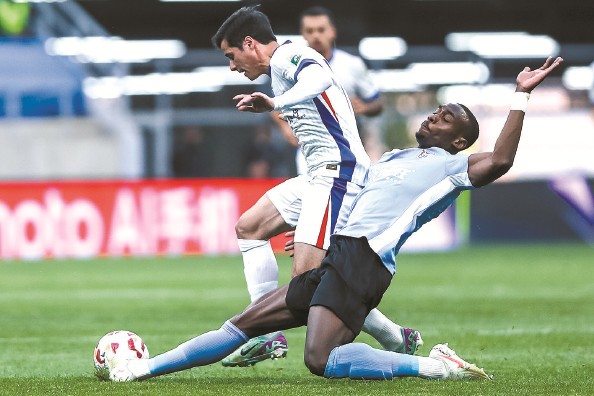 申花首回合3比0胜大连,特谢拉与对手拼抢 图 IC