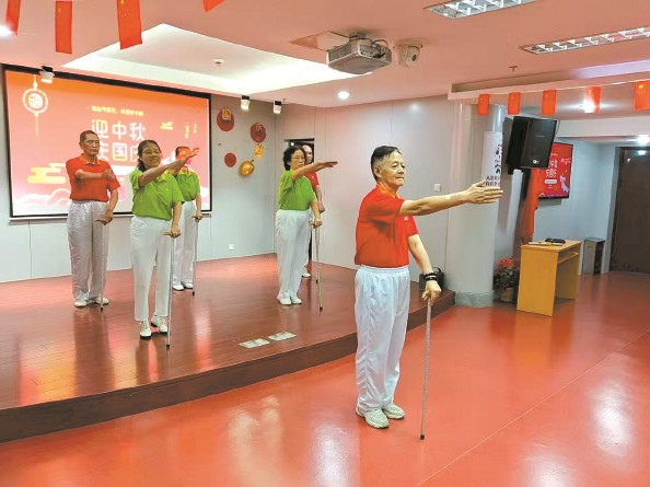 与老年文体活动的缘分,也始于这一年。闸北体育馆举办上海市首届老年人手杖操比赛,王国海一接触就着了迷。后来,芷江西路街道文化中心里,王国海牵头拉起一支晨曦手杖健舞队,把一群热爱体育舞蹈的老伙伴聚到了一起。