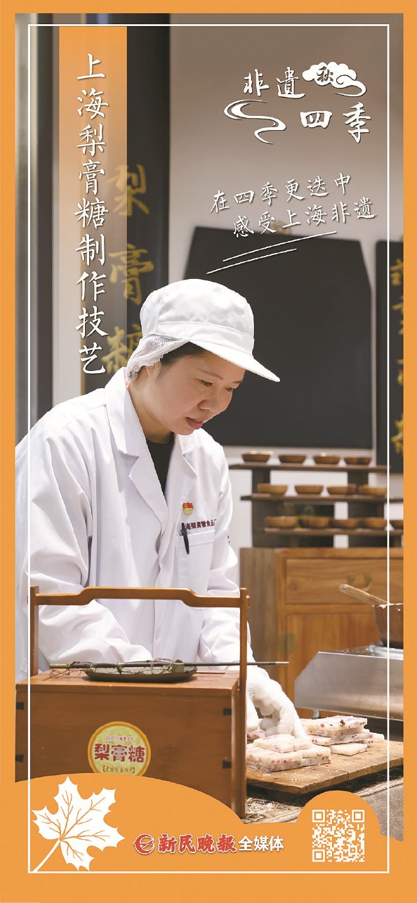 上海梨膏糖制作技艺是国家级非遗项目。市级代表性传承人周蓉蓉说,古法制作有配料、熬糖、翻砂、浇糖、平糖、划糖、翻糖、掰糖、包装等工序,工艺复杂,考验技术和耐心。即便目前已实现机械化生产,制作过程依旧保留部分传统工艺。