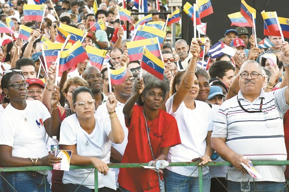 古巴民众集会声援委内瑞拉,抗议美国军事威胁 新华社 发