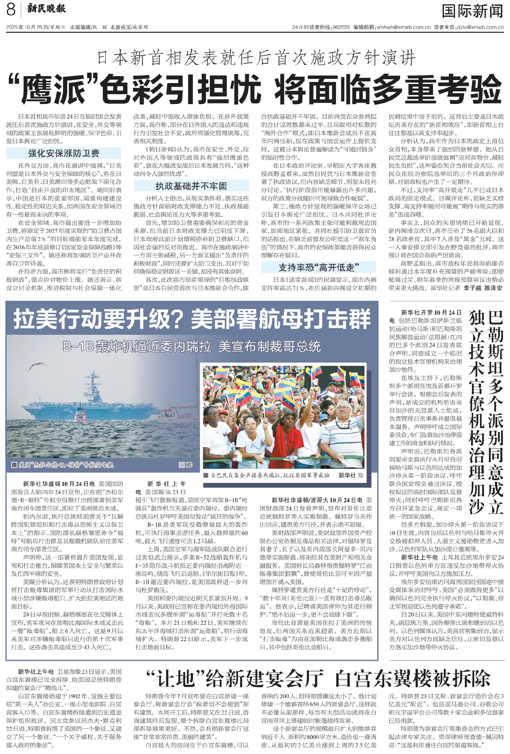 新华社华盛顿10月24日电 美国国防部发言人帕内尔24日宣布,正在把“杰拉尔德·R·福特”号航空母舰打击群部署到美军南方司令部责任区,即拉丁美洲周边水域。