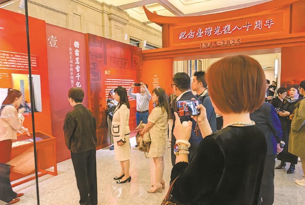 会后,与会代表还参观了“赤子同心补金瓯”纪念台湾光复80周年暨台胞抗日史料展(见上图)。据悉,上海市于本月25—28日期间开展多场系列纪念活动,将有近千名在沪台胞各界代表出席相关活动,并组织参访四行仓库、淞沪抗战纪念馆等地。