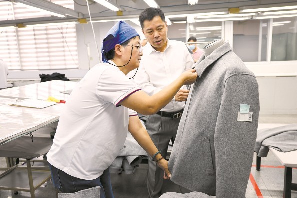 李长虹与员工讨论成衣工艺 受访者供图