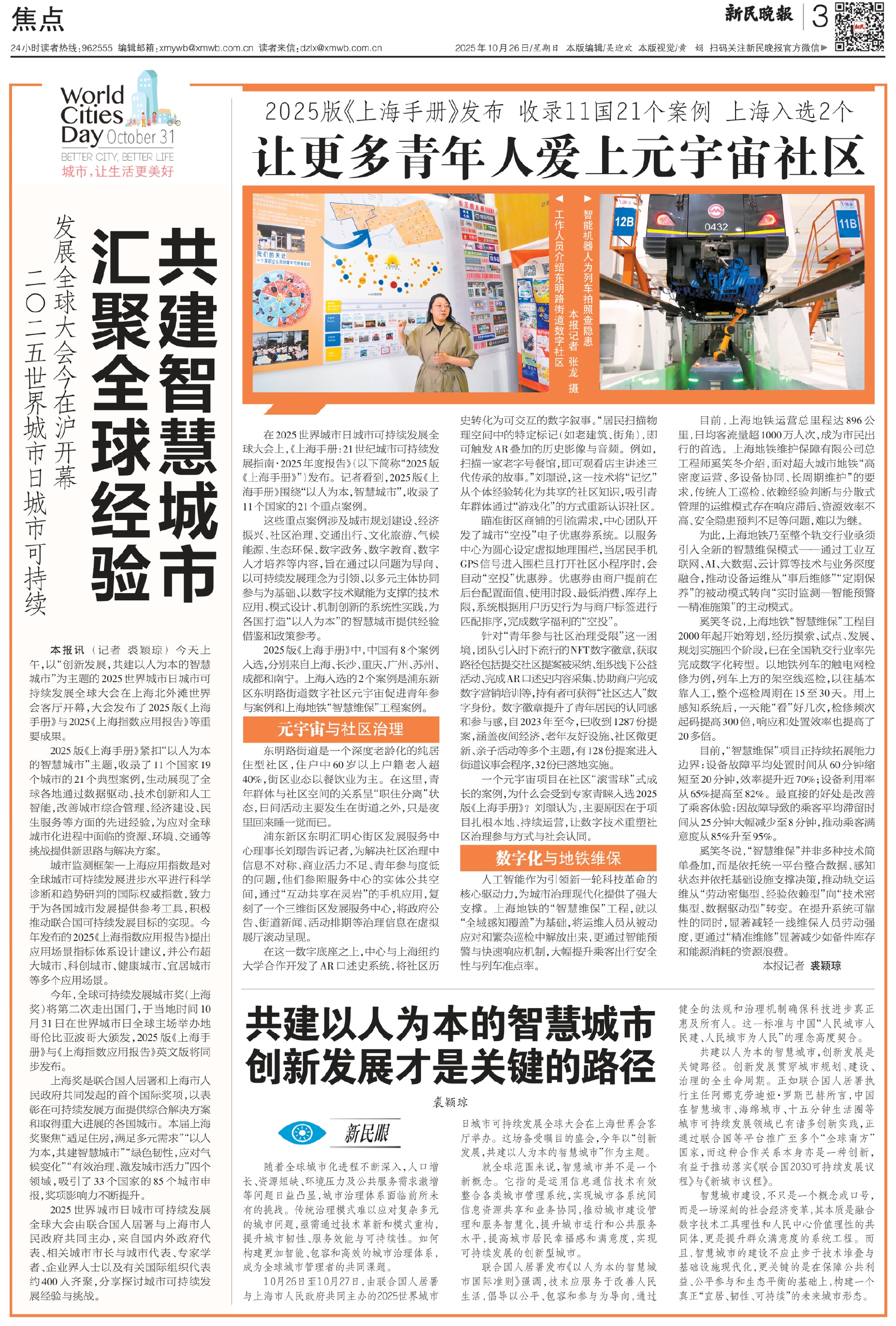 本报讯(记者 裘颖琼)今天上午,以“创新发展,共建以人为本的智慧城市”为主题的2025世界城市日城市可持续发展全球大会在上海北外滩世界会客厅开幕,大会发布了2025版《上海手册》与2025《上海指数应用报告》等重要成果。