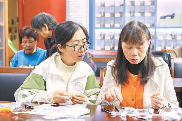 日前,在松江区小昆山镇社区文化活动中心,松江区老年大学的学员跟着老师学习古典舞和非遗盘扣制作。近年来,松江区老年大学紧密结合老年人实际需求,不断优化教学并开设丰富多样的课程,为老年人搭建起学习、交流和展示的平台,让他们在课堂中学习新知识、结交新朋友、享受新生活。 本报记者 陶磊 通讯员 姜辉辉 摄影报道
