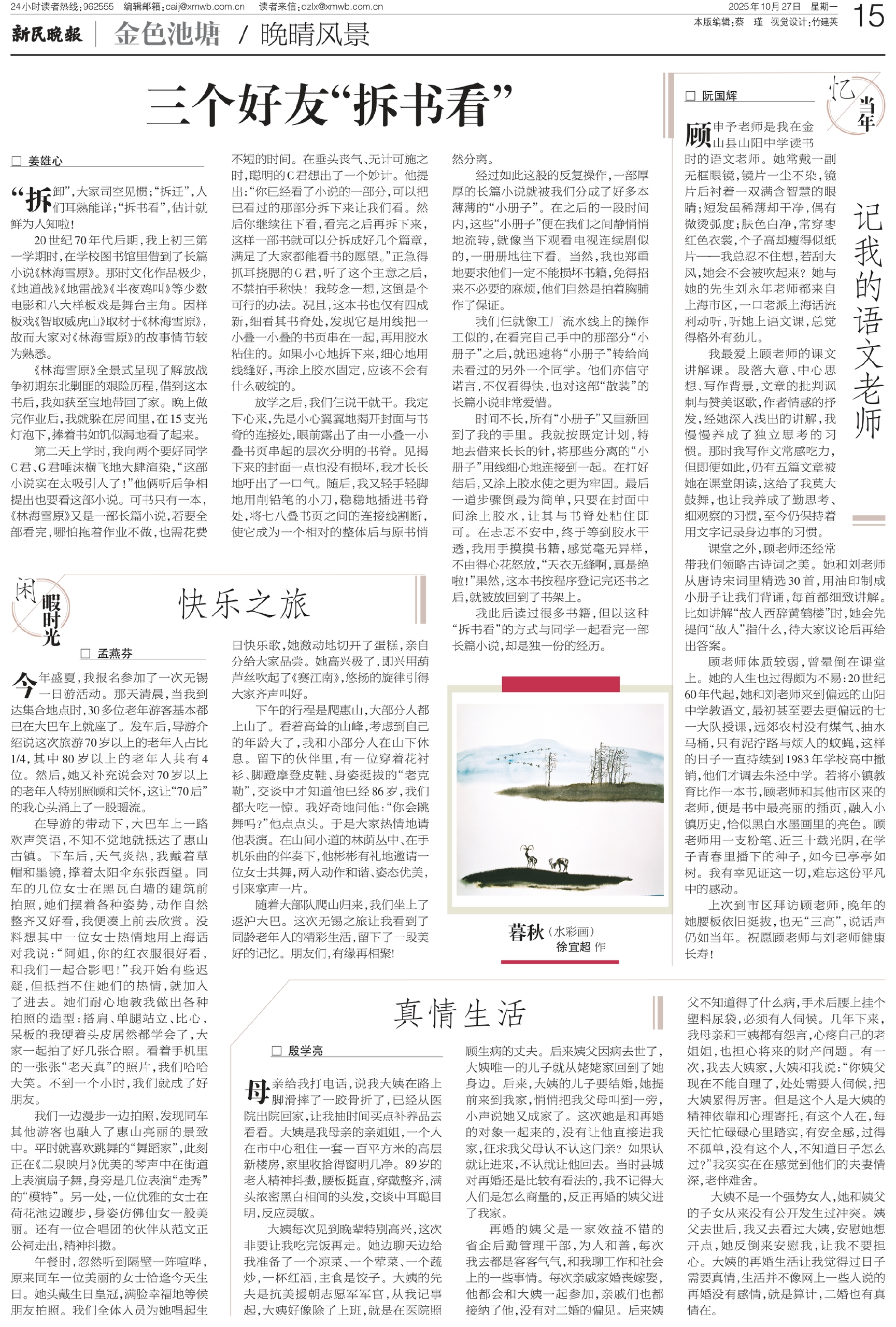 我此后读过很多书籍,但以这种“拆书看”的方式与同学一起看完一部长篇小说,却是独一份的经历。