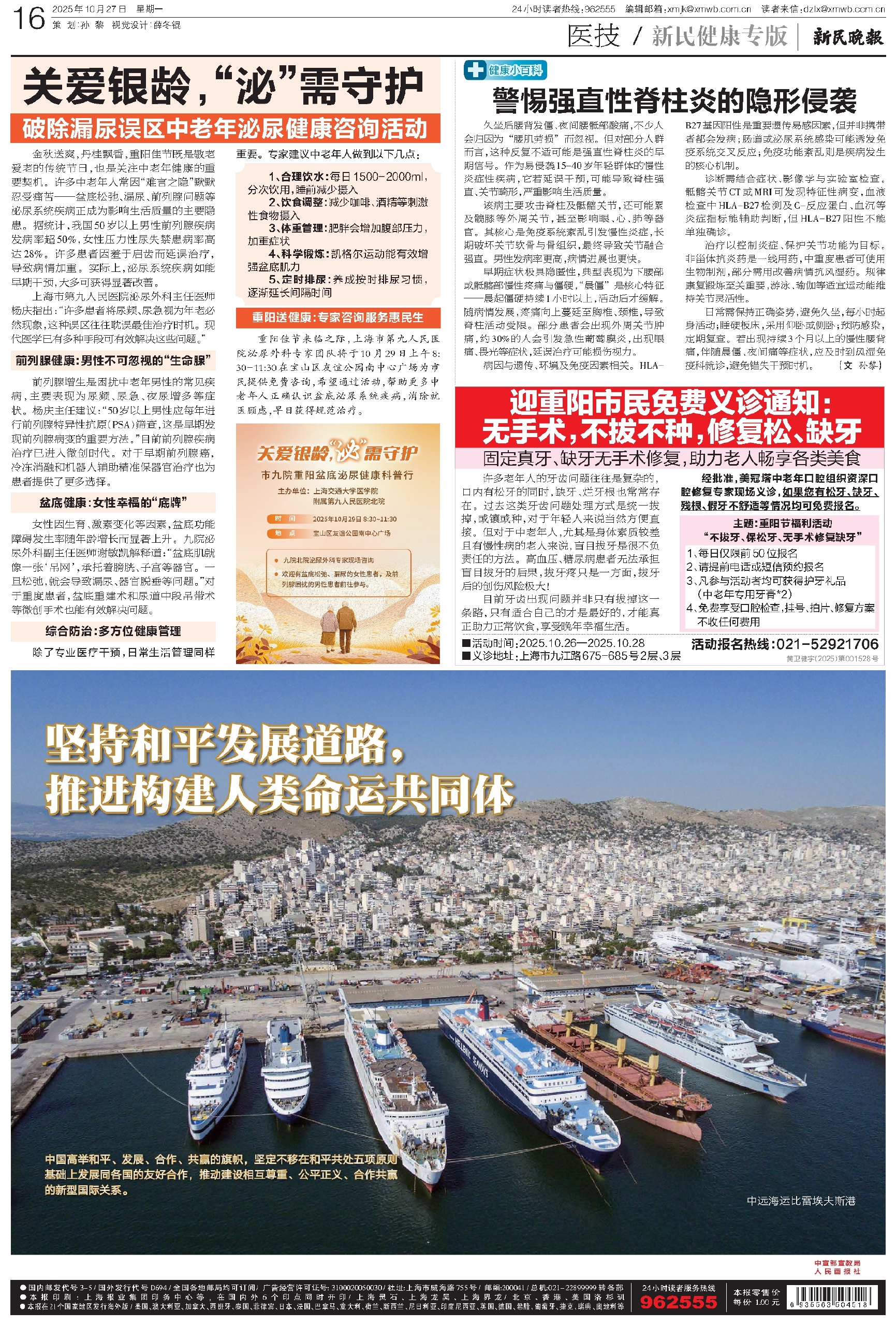 重阳佳节来临之际,上海市第九人民医院泌尿外科专家团队将于10月29日上午8:30-11:30在宝山区友谊公园南中心广场为市民提供免费咨询,希望通过活动,帮助更多中老年人正确认识盆底泌尿系统疾病,消除就医顾虑,早日获得规范治疗。