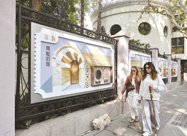 作为街区内重要地标,上影演员剧团外墙改造而成的电影艺术家肖像浮雕长廊今日揭幕。剧团所属的秦怡、张瑞芳、白杨等七位著名艺术家的浮雕亮相,引来居民、游客驻足品味。复兴西路永福路口的电影时光主题花园摆上了电影道具和电影街区标识供市民打卡。周璇旧居门头、张乐平故居等12个点位在微更新后,以“润物细无声”的方式将电影元素呈现于街区。