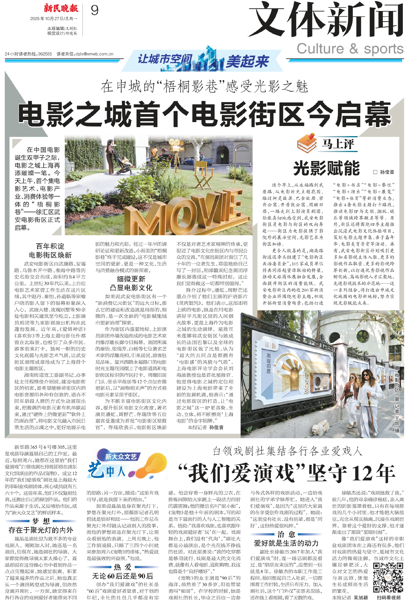 在中国电影诞生双甲子之际,电影之城上海再添璀璨一笔。今天上午,首个集电影艺术、电影产业、消费体验等一体的“梧桐影巷”——徐汇区武安电影街区正式启幕。